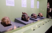 圧巻なのが、祭器である銅剣168本の展示だ。これは島根・出雲市の荒神谷遺跡で84年に出土した銅剣で、弥生時代の青銅器研究に大きな衝撃を与えたという。各個を見比べても大差がなく、大きさや重さが規格化されていることがわかり、当時の鋳型による量産技術の高さがうかがえる。