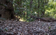 作品が設置されたのは、三沢が木彫の素材として使用する木と同種の、クスノキの下。三沢は、穏やかで豊かな森のこの一角に、とくに大きな魅力を感じたという。三沢は作品を森のなかに設置することの魅力をこう語る。「作品制作のときは、いつも場所と作品をシンクロさせるようにつくっている。原型となった木と、森の木との関係はもちろん、例えば歩きながら作品を見ていると、周囲の木々との関係性で見え方が様々に変化する。設置して改めて見ても、とてもよく場所に馴染んでいるように感じている」。