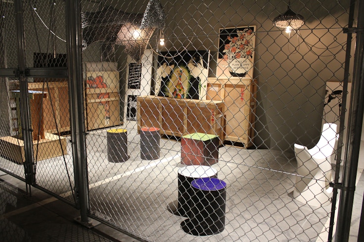温かみのある客室とは反対に、工業素材のフェンスを用いて無機質で硬質にデザインされたアートストレージ。展示としてではなく、アトリエの片隅に置かれているかのように、空間に溶け込む作品の数々を見ることができる。