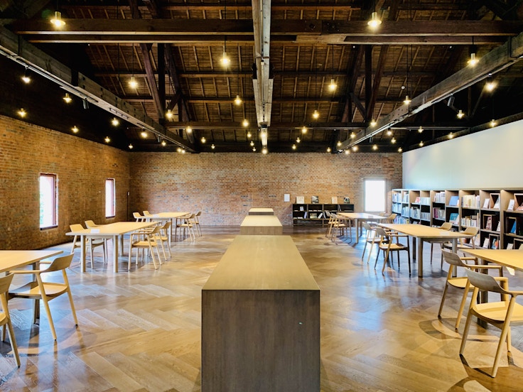 同館の大きな特徴は、館名にもなっている煉瓦造りの建物だ。同館は、明治・大正期に建設された元シードル工場「吉野町煉瓦倉庫」を改修したもので、その建築設計を田根剛が手がけた。