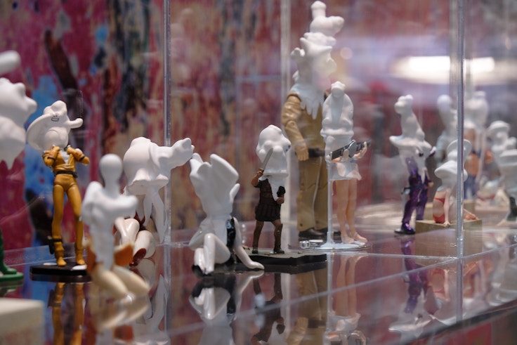 まるで、光の中を歩いているような美しい空間だが、よく見ればスピナーの中には銃や弾丸といった暴力性を示唆するモチーフもある、ニック・ケイヴがアフリカ系アメリカ人のアーティストであることからも、現代のアメリカ社会が対峙するコロナ、銃、人種といった困難な状況も想起させる。