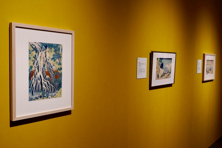 これらの作品はたんなる風景を描いたものではなく、雨、風、雪、月といった気象現象が大きな要素となっており、独特の美的感覚が見て取れる。展示では、有名な葛飾北斎の《冨嶽三十六景 凱風快晴》や《冨嶽三十六景 神奈川沖浪浦》(ともに1830〜33頃)の異なる摺りを並べて展示しており、擦りによる色味や表情の違いを見比べることができる。