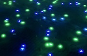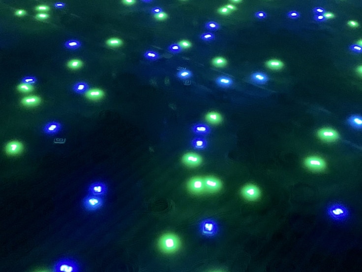 本展では、その最新バージョンである《「時の海─東北」プロジェクト(2020 東京)》(2020)を発表。このプロジェクトは、被災した沿岸地域の3000人にデジタルカウンターのスピードを設定してもらい、それぞれが震災時に何を思い考えたのか、想起させることを目指す。本展で見られるカウンターは719個だが、最終的には3000人の時間が集う世界となる。緑と青のLEDの組み合わせは、今回が初めてだ。