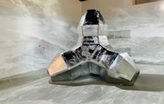 今回は、新作の映像と巨大なテトラポッドを組み合わせたインスタレーション《where are you now》を発表。馴染み深いテトラポッドが、体温を維持するための銀色のエマージェンシーシートによって覆われ、展示室の中心に佇んでいる。新型コロナの影響で、人に移動が拒否され、消費の物流だけが稼働する現在の状況を、「群」から離れたテトラポッドで表現した作品だ。潘は、「自粛期間中、自宅にいながらどこまで『外』が想像できるかを考えた。作品が不特定多数の鑑賞によって、見知らぬ他者のなかに存在し続けていくことを願っています」としている。