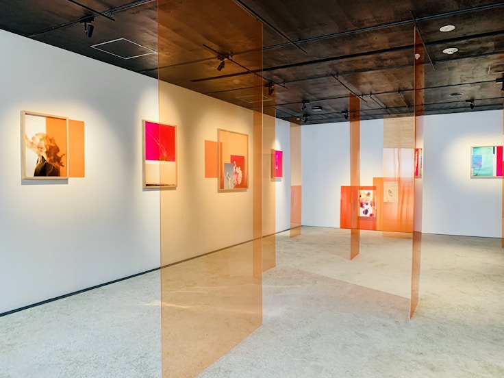 なお会場には天井からカラーフィルターが吊るされており、それを通して作品を見ることで様々な色の変化が楽しめる。
