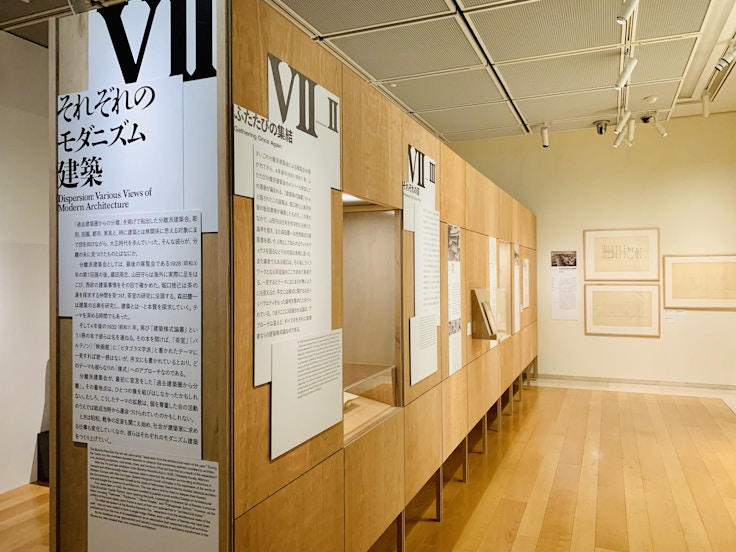 分離派建築会は、「派」と称しつつも「一人一様式」を建前としていた。そのため分離派建築会としてのまとまった活動は作品展の開催が中心であり、建築設計などはそれぞれが「個」として活躍していく。本展では、1928年に最後となる第7回作品展までの分離派建築会の歴史を壁面で通覧できるいっぽう、個々の作例も同時に把握できる。この「派」と「個」の対比も本展の大きな特徴だ。