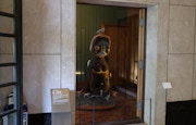 まず、玄関前の狛犬の横では来場者を出迎えるのが、胎児のような「人型」をモチーフに絵画や彫刻を制作し続けてきた加藤泉の、石を使った小さな作品だ。さらに玄関横の第一応接室にも加藤の大型の立体作品が展示されており、足を踏み入れただけでも、いつもの東京都庭園美術館とは異なる表情を見ることができる。