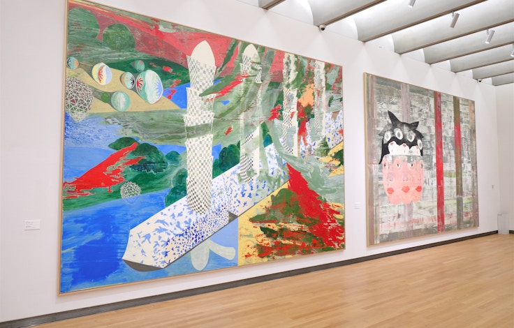 大きく円形を描いた張出し窓が特徴的な大食堂には8点の新作が展示されるほか、2階のベランダには2018年以降に加藤が制作に取り組んできた、絵画と彫刻を媒介するような布作品を展示。ほかにも、館内では思わぬところで加藤の作品が顔をのぞかせ、その多様な表現を堪能できるので、訪れた人はぜひ探してみてほしい。