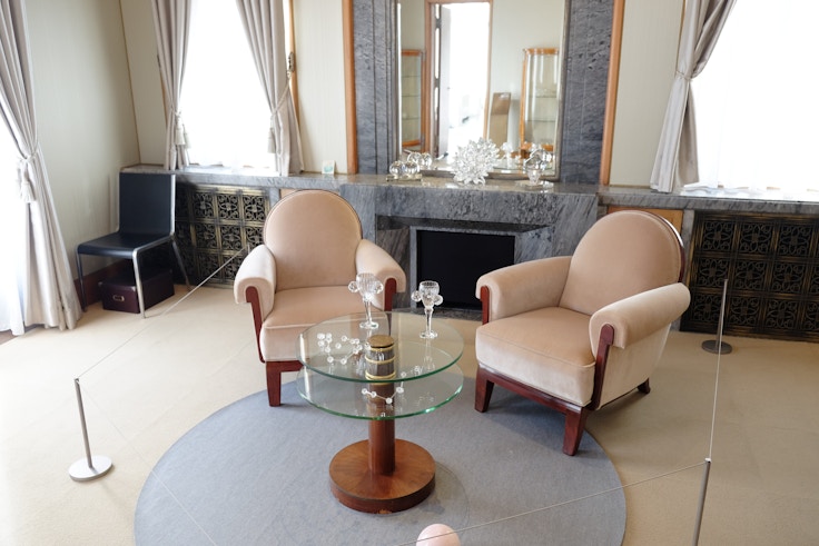 今年2月に逝去した康夏奈は、小豆島を拠点に当地の植物や石などの素材も使いながら、海や宇宙といった自然の広い空間をモチーフに制作を続けてきた。康は、朝香宮殿下と若宮、それぞれの寝室だった部屋でも作品を展示している。
