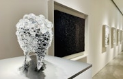 今回、名和は9つものシリーズを一堂に展示。オブジェクトを透明の球体で覆った「PixCell」をはじめ、「Black Field」「Trans」「Dune」「Moment」「Catalyst」「Blue Seed」「Rhythm」「Silouette」までが展示され、このうち「PixCell」「Trans」「Catalyst」以外は初公開となるシリーズだ。 しかも展示作品すべてが2020年の新作となっている。
