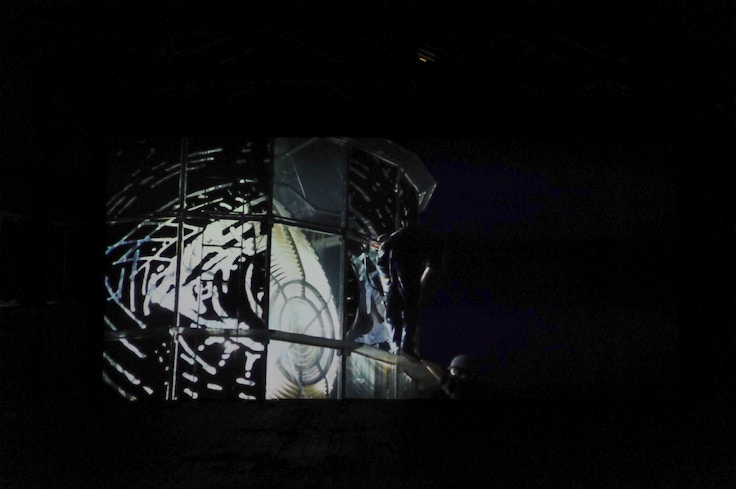 プロジェクターの周囲には、レプリカの灯台から持ってきたフレームも据えつけられており、レプリカの灯台のさらなるレプリカが、元機織工場のなかにかたちづくられている。また、石毛が庁舎の灯台にプロジェクターを持ち込んでレプリカの灯台を発光させるドキュメンテーションも上映され、機能が欠落した灯台に投影された、新たな物語を体験することができる。