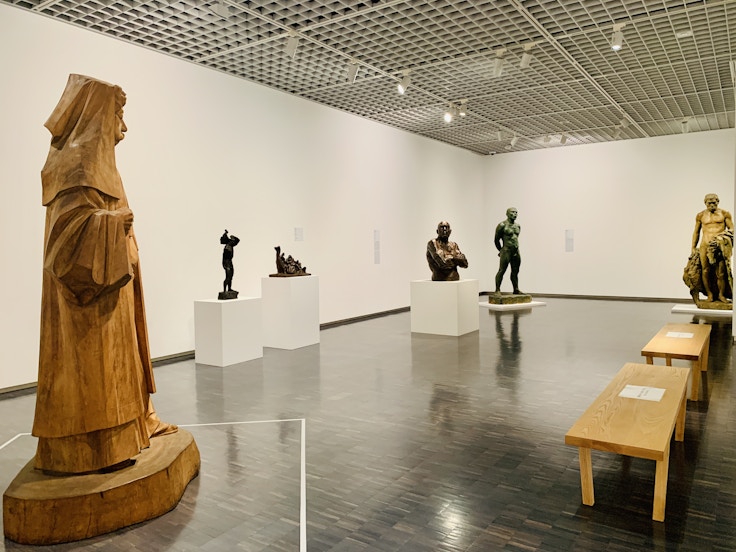 東京国立近代美術館の2階にあるギャラリー4。ここで同館のコレクションを利用した小企画「男性彫刻」が開催されている(〜2021年2月23日)。
