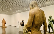 会場は筋骨隆々とした「強い男」たちの彫像から始まり、偉人たちをかたどった肖像彫刻、そし老人や子供といった「弱い男」という順に作品が配されている。