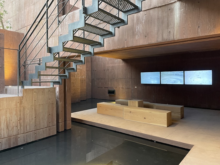 同じ空間には、写真家・西野壮平が別府の100湯以上の温泉や、風景や日常を撮影した2万枚以上の写真をコラージュして制作した作品《Diorama Map "Beppu" 別府温泉世界地図》と、鈴木ヒラクが別府の湯けむりをモチーフにした新作《ゆらぎから光へ》を展示。ロビーに続く2階の「HOT SPRING BAR」では、写真家・草本利枝が別府の地獄を訪れ、色彩豊かな風景を撮影した写真シリーズを展開している。