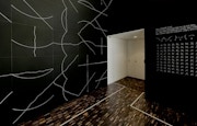 同館3階にある吹き抜け空間「建物を思う部屋」での常設展示が始まったのは、ルウィットの「ウォール・ドローイング」シリーズのひとつである、《ウォール・ドローイング#769 黒い壁を覆う幅36インチ(90cm)のグリッド。角や辺から発する円弧、直線、非直線から二種類を体系的に使った組み合わせ全部。》(1994)だ。