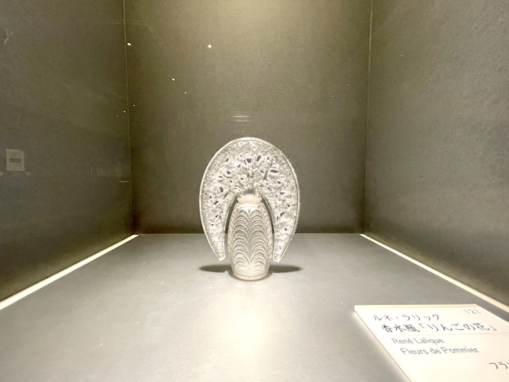 また、ルネ・ラリックの作品は重要な位置を占める。ラリックは1910年代にコティ社から香水瓶のラベルデザインを依頼され、以降香水瓶そのものの創作にも積極的に携わるようになった。会場には、ラリックがラベルデザインを初めて依頼されたコティ社の香水「レフルール」の香水瓶をはじめ、ラリックがオリジナルで製作した香水瓶が並ぶ。生涯で約400種類の香水瓶をデザインしたというラリック。その一端を堪能したい。