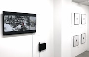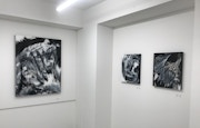3階は岡田佑里奈と清川漠のモノトーンを基調とした作品によって空間がつくられた。岡田は1995年兵庫県生まれ、京都造形芸術大学大学院修士課程卒業。京都を拠点に制作活動を行う。プリントしたモノクロのポートレート写真の表面に特殊な技法でひび割れを起こし、独特の質感をつくりだした作品を展示。写真における視覚情報の価値を問う。