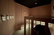 ふたつの冷水エリアでは、霧状となった水に、禅における書画のひとつ「円相」をモチーフにした《円相を通り抜けて》と《円相に迷い込んで》が映しだされており、身体ごと作品に没入することができる。サウナ体験直後に冷水を浴びると、感覚が鋭くなり、頭がすっきりするような感覚を得られるだろう。