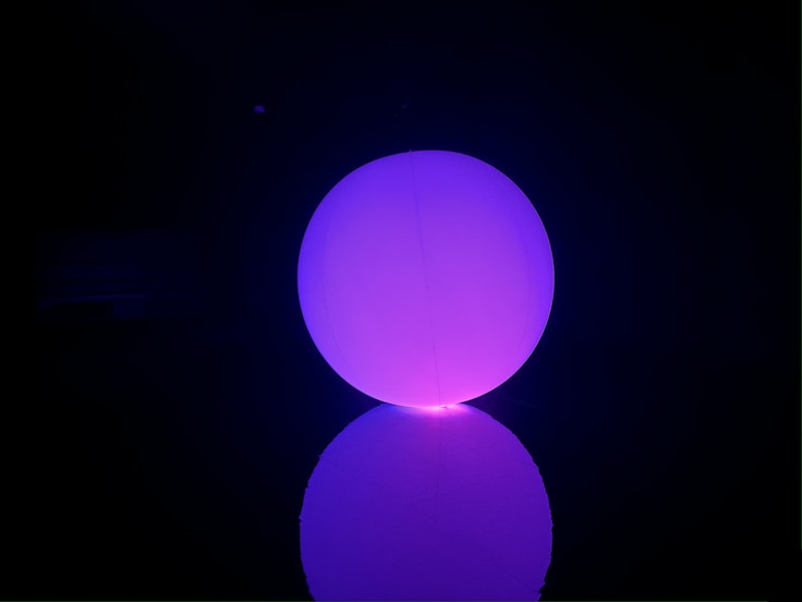 最後に体験したいのが、巨大な球体が空中を上下して浮揚する作品《空中浮揚》。球体はまるで物理の法則に反する超自然現象かのように万有引力に逆らい、地面からゆっくりと空中に浮遊していく。浮遊すると真っ赤な平面の円のようになるこの作品は、鑑賞者を完全な非日常へと導いていく。