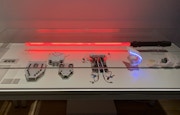 また、会場の吹き抜け空間には、国内外で高い評価を得た2011年の作品《particles》をアップデートした《particles 2021》を展示。これは、8の字状に組まれた巨大なレールを転がるボールによって空間に像を浮かび上がらせる作品だ。以前はボールにLEDを内蔵し明滅のタイミングを調整していたが、今回はボールの位置情報を取得するシステムを開発。ボールを正確にトラッキングするレーザー照射によって、立体的な視覚表現が実現した。