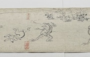 このほか同章では、甲巻の画面順序が入れ替わる前の状態を模した《鳥獣戯画模本(長尾家旧蔵本)》(15~16世紀)をはじめ、江戸幕府の御用絵師だった狩野探幽による《鳥獣戯画模本(探幽縮図)》(17世紀)など、様々な絵師たちが描いた鳥獣戯画の「模本」も展示。