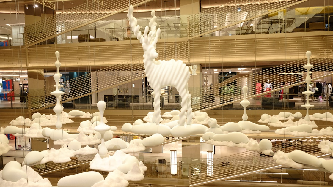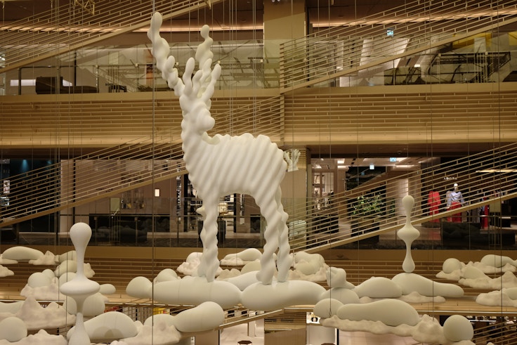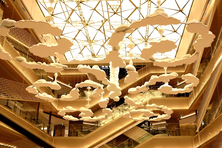 今春、開業4周年を迎えるGINZA SIXの中央にある吹き抜けの空間では、これまでに草間彌生やダニエル・ビュレン、ニコラ・ビュフ、塩田千春、クラウス・ハーパニエミ、吉岡徳仁といったアーティストやデザイナーが作品を展示してきた。