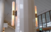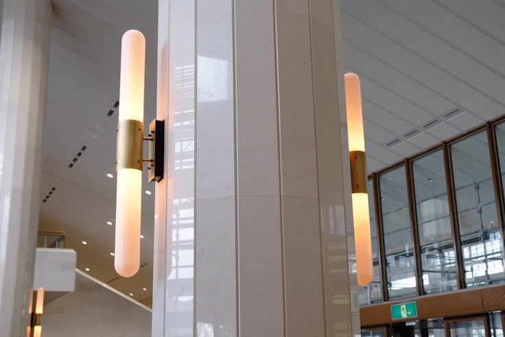 まず、本館のコンセプトをもっとも象徴した存在と言えるのが、エントランスだ。高い天井と大きなガラス窓による広々とした建築を活かしながら、大阪を拠点にするクリエイティブチームのgrafがデザイン。滋賀の信楽焼による陶製の素材を用いたサインやベンチ、照明を導入し、居心地の良さを感じる空間が出現した。また、グラフィックデザインやサイン計画は原田祐馬により設立されたUMA/design farmが担当している。