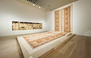アンナ・ボボギアン(1946年エジプト生まれ)は政治学と経済を学んだバックボーンを持つアーティスト。世界の歴史を政治、経済、産業、文化という観点からストーリーテリングする作品を手がけてきた。本展では、若い女性の搾取など、シルク産業の背景にあるストーリーを紙芝居のように仕立てた新作《シルクロード》(2021)を展開する。