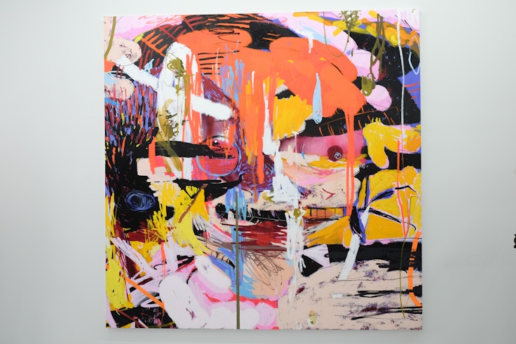 2階もホワイトキューブの展示スペースとなっており、ここにもペインティング、ドローイング、立体と様々なメディアが展示される。モリの作品には自身の姿が多く登場しており、その姿とともに描かれた鮮やかな色による日常の景色を、テクスチャーの質感とともに楽しめる。