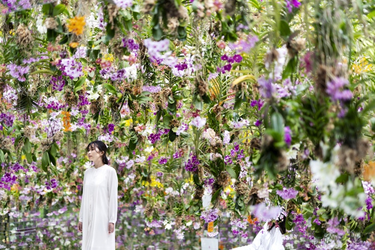 《Floating Flower Garden:花と我と同根、庭と我と一体》(2021)は、本物のランを使用した大型庭園作品。作品に使用されているのはラン科の着生ランで、土のない場所で生き、空気中から水分を吸収することができるという。