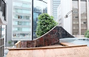 日比谷の高架下を再開発した商業施設「日比谷OKUROJI」のいちスペースでは、村山修二郎が《動く土 動く植物》を展示。その土地の土や植物を使用して絵を描く村山は、自身の活動拠点である秋田と、東京の街路樹の下などにある雑草を使用して作品を制作。展示空間には草や土の香りが充満し、視覚のみならず嗅覚にも訴える作品となっている。