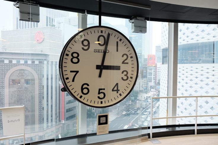 銀座の三愛ドリームセンタービルにある「RICOH ART GALLERY」内では、株式会社スマイルズ代表の遠山正道がふたつの作品を展示。ひとつめは《Sprint Hours》と名づけられた10進法でつくられた時計で、効率化によって国家が一日のうちの2時間を消した世界を表現した。