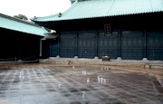 江戸幕府の官学所であった「湯島聖堂」では、宮永愛子による《ひかりのことづけ》が展開されている。宮永は日本の図書館発祥の地といわれるこの聖堂の回廊に、光を受ける空間としての魅力を感じ取った。回廊の中央に富山産のガラスを配置し、陽の光や雨の輝きといった様々な光を集めている。