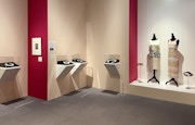 そのほか、会場にはシャネルのドレスや香水瓶、マン・レイの裸体写真のモデルで知られた画家・彫刻家のメレット・オッペンハイムによるジュエリーなども並んでおり、マン・レイのパリ時代のファッションやトレンドを見ることもできる。