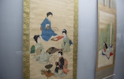 1974年に「生誕100年記念 上村松園展」が開催され、また上村松園の作品を総計10点コレクションしているように京都市京セラ美術館にとって上村松園は重要な作家だ。回顧展は第1章「修業—二人の師の教え1887-1902」から始まる。京都府画学校で師事した「今蕭白」こと鈴木松年のもとで人物画を学び、力強い肉太の描線を受け継いだ松園は、松年門下として第3回内国勧業博覧会に《四季美人図》 を出品してデビュー。女性の成長を四季の移ろいに重ね合わせた表現が、松園の出発点となった。
