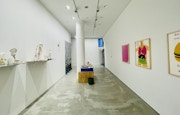 会場には、シュリグリーが小説を読んで描き下ろした複数の絵画作品と、金氏による立体作品が混在。また、村田の小説から抜粋された言葉が展示室の壁にアクセントを与える。加えて注目したいのは村田が学生時代に描き、今回が初公開となる油彩画4点とドローイング1点だ。