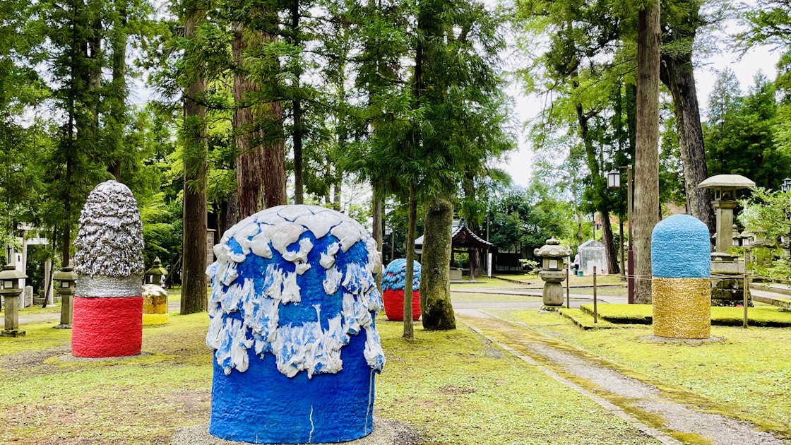 全国で唯一「紙の神様」を祀る大瀧神社・岡太神社では、陶芸の世界で独自の作品を発表し続ける桑田卓郎の巨大作品群や、越前和紙の手漉きの技を引き継ぐ人間国宝、九代 岩野市兵衛による越前生漉奉書のインスタレーションが存在感を放つ。