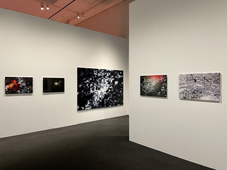 「Imaginary Garden」では、造花やカラーリングフラワーなど、自然な組み合わせでは生まれない合わせで飾られた花をとらえた作品が展示。本展で展示された造花のほとんどは墓地で撮影されたもので、亡くなった人々に寄り添う永遠の美や記憶、思い出が色褪せないようにとの願いが込められている。
