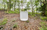 今回は展示室の外も見逃せない。日本有数の温泉地である箱根は、アイスランドとも共通する点が多い地域だ。ホーンは今回、美術館屋外の森にも大きなガラス彫刻作品を設置した。あえて遊歩道近くではなく、森の中に分け入った場所に設置された本作《鳥葬》(2017-2018)は、今後もこの場所に常設展示。膨大な時間をかけ、風景のなかへと溶け込んでいく。