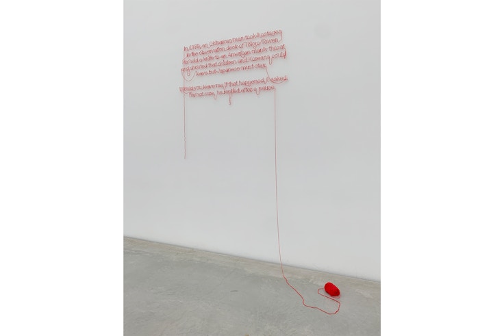 本展は、ピンクに囲まれた展示室で幕を開ける。中央に位置するのは、ユゥキユキが母親との共同制作を行った《「あなたのために、」》(2020)。壁面には、西山美なコによるふたつのテレホン・プロジェクトのアーカイブが展示されている。本展キュレーターの高橋律子は、ここを「ステレオタイプとして女性をしばってきた”ピンク”をもう一度獲得する」部屋だと語る。