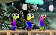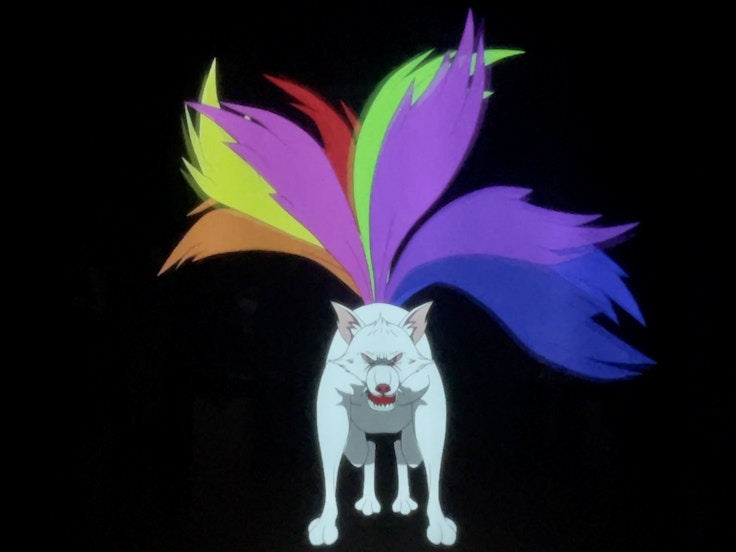 例えば、本展でもっとも大規模な作品《100の妖怪》は、その名の通り「百鬼夜行」の様子をアニメーションで表現したものだ。しかしながら、「だいだらぼっち」や「ろくろ首」などのよく知られる妖怪だけが登場するわけではない。そこには、第二次世界大戦中にシンガポールで活動し、ともに「マレーの虎」と呼ばれた2人の人物──ひとりは日本人盗賊で後に日本軍の「F機関」(南方の秘密工作機関)でスパイ活動を行った谷豊、もうひとりはシンガポール作戦を率いた山下奉文大将──を中心に、軍人、スパイ、思想家などが妖怪の姿を借りて出現する。