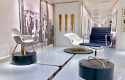 会場ではまず、イームズ夫妻のデザインしたハーマンミラー社の家具を紹介。シートと背もたれの連結部分から余計な木材を省き、軽量ですっきりとした外観を実現した「プライウッドチェア」(1946)や、ファイバーグラスを成型して有機的なシェルシートを実現した「グラスシェルチェア」(1950)など、夫妻の代表作となる椅子を展示販売。実際に座り心地をたしかめることもできる。