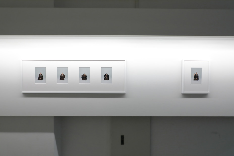 一枚、四枚、三枚……というように、写真は噺の場面に応じて緩やかにまとまり、あるいは独立する。ここでも川内の展示と同様、写真の「シークエンス」に焦点が当てられているのは興味深い。「この写真群は、ろう者が落語を見る経験と重なる部分もあると思いますが、想像力が余白を補う経験は、じつは連なる写真の目に見えない『間』を想像することとも重なるのでは」と田中は問う。