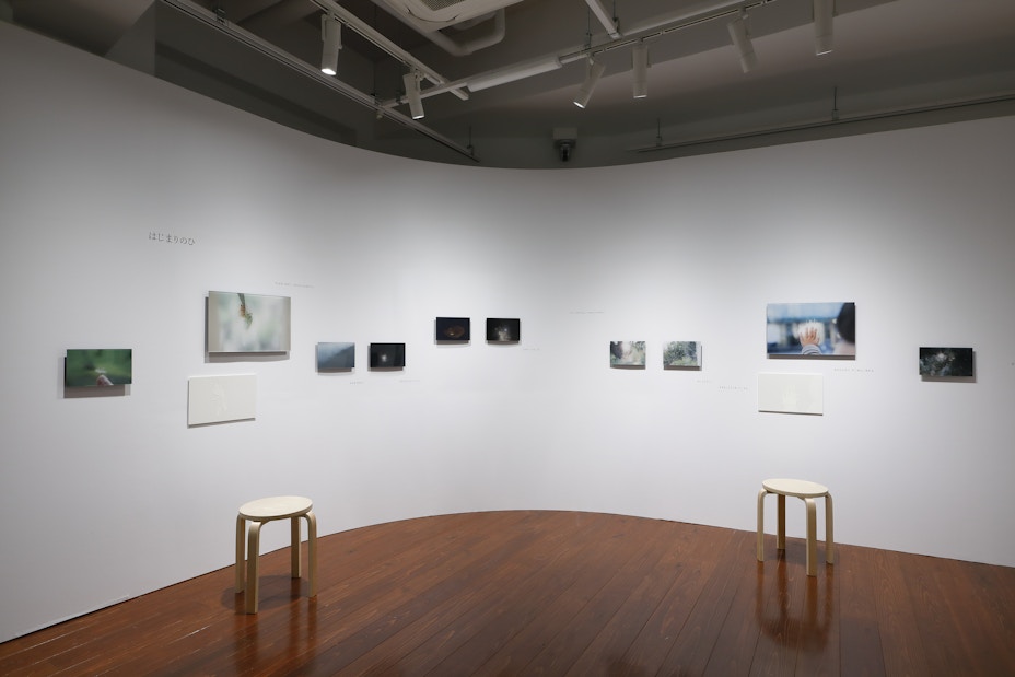 展示を準備するなかで、目が見える人と見えない人が集まり、『はじまりのひ』に対する様々な「見方」を持ち寄り、自分なりの写真を見る経験を立ち上げることを試みる読書会も行われた。展示会場では、目が見えない4人が読書会のなかでとらえた『はじまりのひ』が、言葉や絵などで展示されている。なかには、写真から感じた「光の言葉」について思いを巡らせたものや、写真の印象を綿を使った触れる展示物で表現したものもあり、同じ写真がもたらす想像の幅広さを感じさせる。