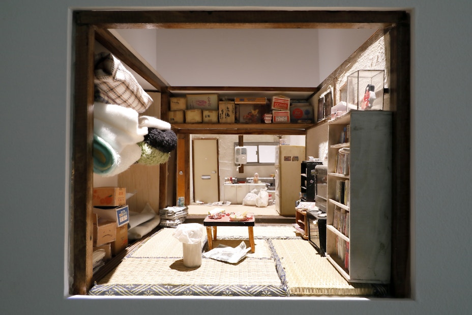 特殊清掃の現場に携わる小島美羽は、3つのミニチュアを展示。いずれも孤独死の現実を感じさせるような生々しい作品だが、じつはこれらは小島が印象に残った現場の特徴を組み合わせ、語り直したもの。フィクションとドキュメンタリーのあいだにある作品から、生と死が想像できる。