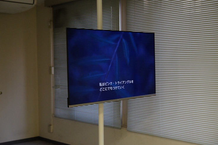 6階に展示されている小林椋と時里充によるユニット「正直」による《オフィスミュージック》は、人々を管理する近代的装置としてのオフィスに注目した作品だ。元オフィスである会場では、立体物と機械、ディスプレイが設置され、機械が無意味に棒を動かし続けている。新型コロナウイルス以降、リモートワークが増えてオフィスの役割が変質するなか、近代の労働と環境についての問いを喚起する。