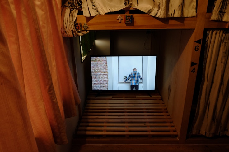 ほかにも、詩人・谷川俊太郎が滞在した部屋では、制作した詩「ココヤドヤにて」を展示。また、社会から排除され孤立しがちな人々と積極的に関わり、公共空間におけるプロジェクトを続けてきたウーカシュ・スロヴィエツが、ほーホームレスたちをホテルに招き入れる映像作品《ヤコブの夢》も上映される。