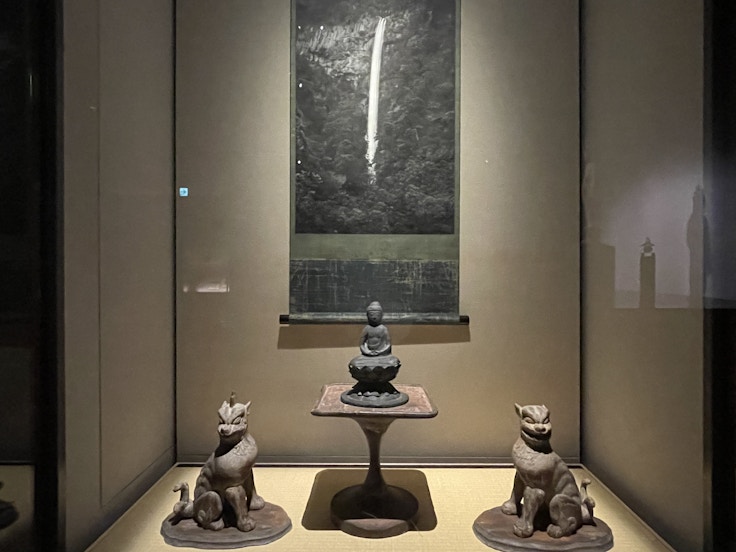 序章「神々のすがた─杉本博司と『華厳滝』と『那智滝─』」では、本展で唯一の杉本作品とある《華厳滝図》(1977)と《那智滝図》(2012)とともに、上述の《十一面観音像》などの神道美術が並ぶ。