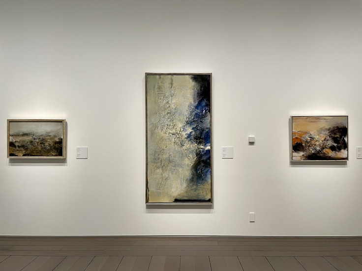 中国出身の画家ザオ・ウーキーは、東洋と西洋が融合した独自の画風を切り開き、戦後のパリ画壇で確固たる地位を確立した。石橋財団には現在ザオの作品が19点所蔵されており、第2章ではそのうちの11点が集結している。なかでも注目は、14年ぶりの展示となる、長さ3.7メートルを超える中国紙に墨で描かれた大作《無題》(1982)。幹一郎が同作を購入したとき、画家本人からの礼状が届くなど、両者の深い交流を示すものだ。