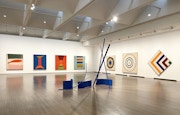 フランク・ステラは戦後アメリカの抽象絵画を代表するひとりで、ミニマルアートの先駆者としても知られている。本展では、画面を黒のストライプで埋め尽くした初期作品《トムリンソン・コート・パーク(第2ヴァージョン)》をはじめ、シェイプト・キャンバスを用いた「ダートマス・ペインティング」シリーズや、鮮やかな色彩を導入した「不整多角形」シリーズの作品が展示されている。